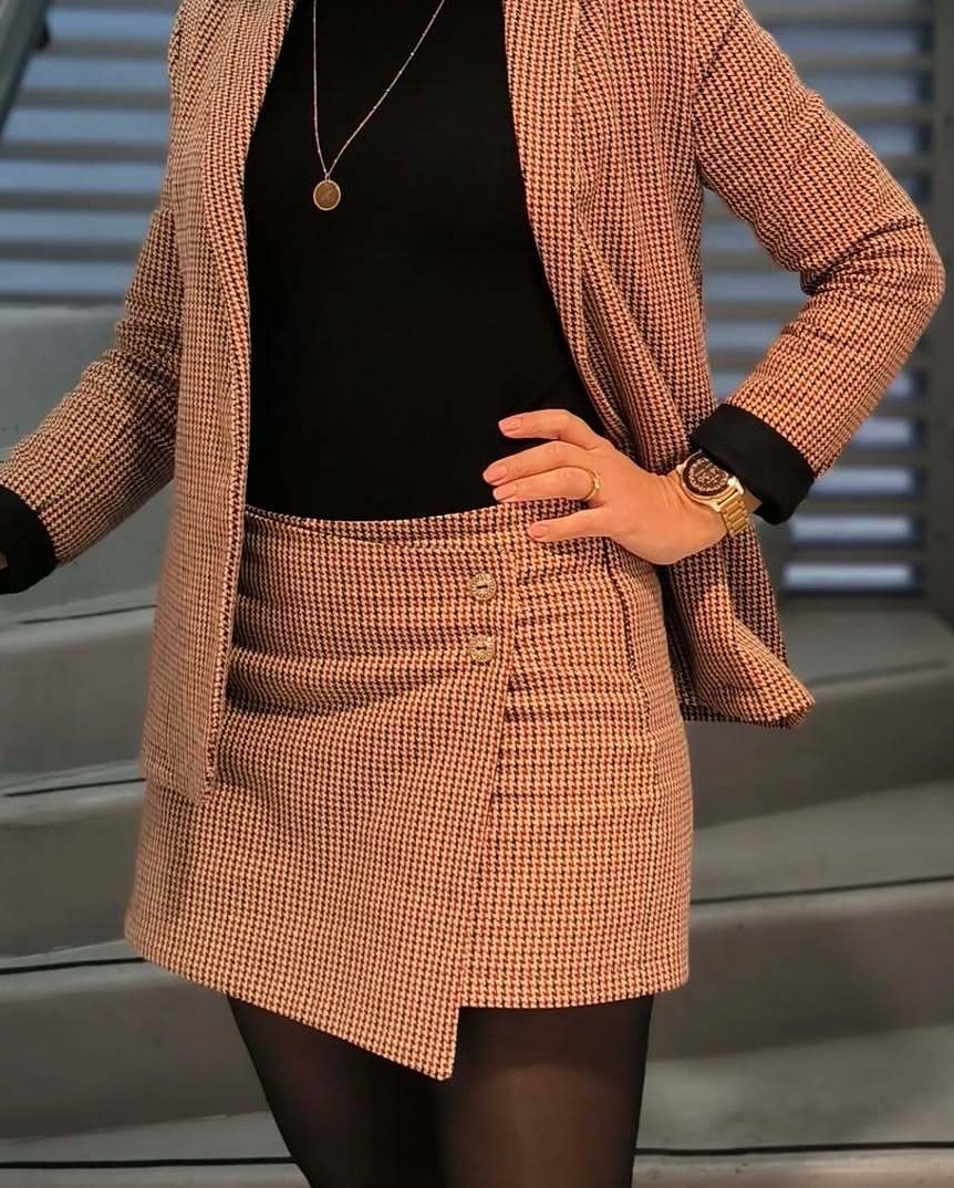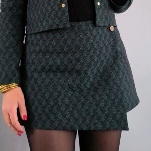 Aujourd’hui, je vous propose quelques versions plus couture en tweed lurex, plus rock en simili cuir, un esprit écolière dans un lainage fin marine pailleté et une version Kilt revisité dans un lainage à carreaux très féminin !